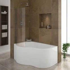 Venice Curved Corner Shower Bath – 1500mm With Screen + Panel