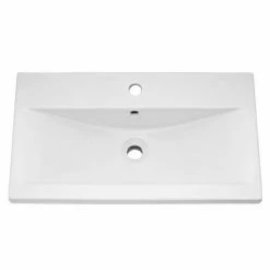 Venice Linea 800mm Satin White Vanity – Wall Hung 2 Drawer Unit With Rustic Oak Worktop
