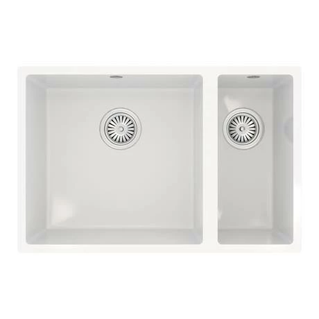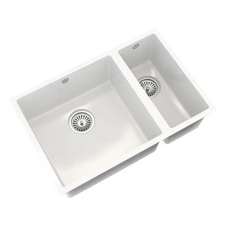 The Venice composite kitchen sink range are constructed from pressed material that is stain, scratch and impact resistant as well as being antibacterial. The sinks can withstand high heat temperatures and are easy to maintain and clean. This 1.5 bowl sink comes in a crisp gloss white finish and is fully reversible. Comes supplied with chrome basket strainer wastes.Â