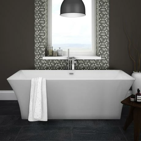 The superb Venice 1690mm modern double ended square free-standing bath featuring smooth swooping lines; bring a super stylish designer look into your bathroom. Manufactured from smooth 4-6mm thick white gloss acrylic with a integrated chrome finish overflow and click clack waste. Looks great with one of our quality wall mounted or floor mounted free standing bathroom taps.