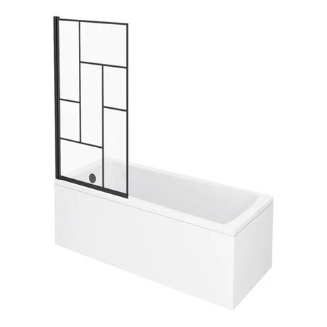 Venice Abstract Matt Black Grid Bath Screen with Square Single Ended Bath