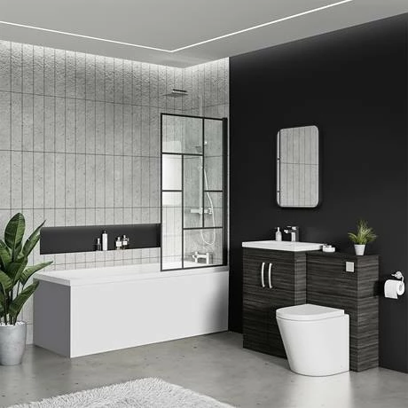 Made from 6mm toughened glass, the stylish matt black grid bath screen which can be rotated through 180 degrees and can be reversed for left or right fitting.