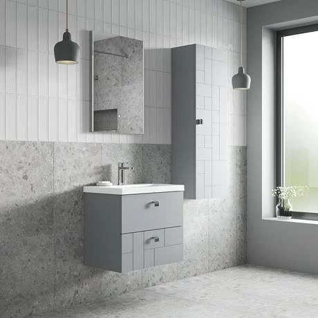 The Venice Abstract Wall Hung Tall Storage Cabinet features an eye-catching geometric design that will create a style statement in your bathroom. It has in-built storage with a soft-closing cupboard door and two internal shelves to keep your toiletries organised. Manufactured from quality materials, this tall cabinet comes fully assembled and is finished in grey satin.