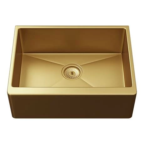With a stunning gold finish, this Venice Belfast style kitchen sink will add a designer look to the kitchen. Made from premium grade stainless steel, the sink has a unique ‘Nano’ coating that is anti-bacterial and scratch resistant. The channel grooves at the bottom of the bowl ensures optimal drainage achieved. Comes supplied with matching basket strainer and waste.