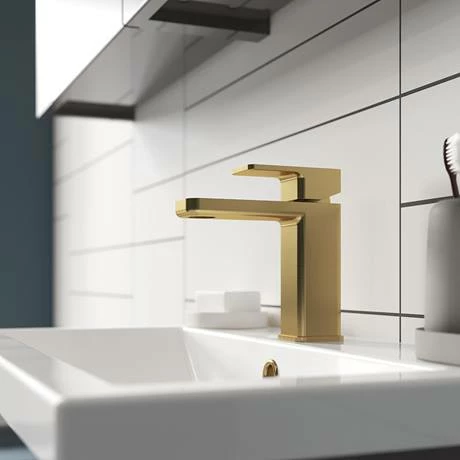The Venice Cubo basin mixer tap features a stunning contemporary angular design with a striking brushed brass finish. Made from brass and incorporates ceramic disc technology providing smooth operation and long life. Supplied with co-ordinating push button waste.