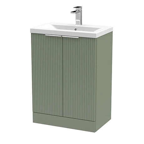 Venice Fluted 600mm Green 2 Door Floor Standing Vanity Unit with Chrome Handles