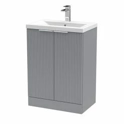 Venice Fluted 600mm Grey 2 Door Floor Standing Vanity Unit with Chrome Handles