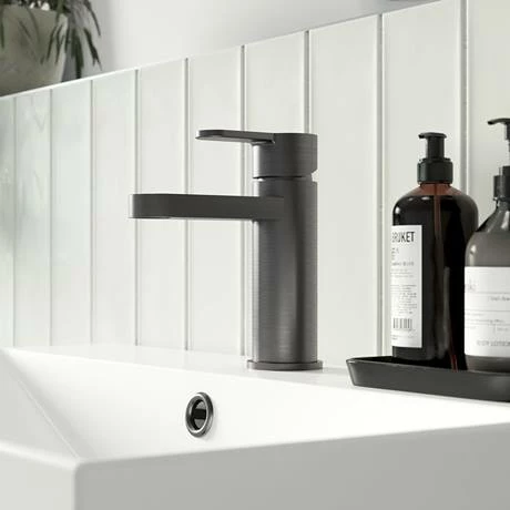 The Venice Giro basin mixer tap features a sleek round edged design with a striking brushed gunmetal grey finish. Made from brass and incorporates ceramic disc technology providing smooth operation and long life. Supplied with co-ordinating push button waste.