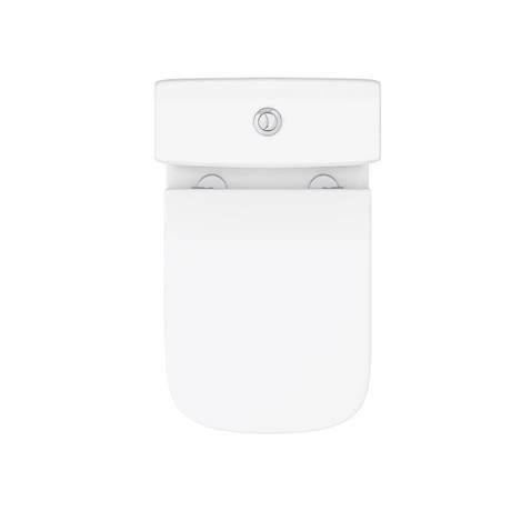 Got a compact bathroom to makeover? Save space with the attractive Venice Modern BTW Close Coupled Toilet. Projecting just 605mm from the wall, this distinctive square WC is designed with cloakrooms and smaller en suites in mind. The contemporary pan is expertly crafted from hardwearing ceramic with a gleaming white gloss finish for a neat minimalist appearance. A chrome effect dual flush push button completes the look. This bathroom essential comes with a quick release soft close toilet seat and wrapover lid that prevents slamming while limiting wear and tear.